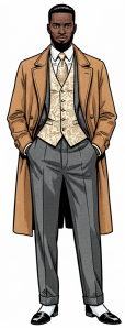Mr Hassan was a tall, very handsome man with neatly trimmed black hair and a beard but without a moustache, which somehow suited his elegant African features. He wore an immaculate suit, decorated silk waistcoat and matching tie and, despite being indoors, a camelhair coat. He had spats over his shoes of all things.