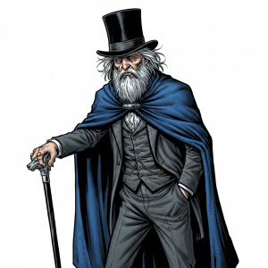 This ‘Bram’ seemed intent on searching first the gathered crowd then the nearby streets and alleys and quickly moved off obviously intent on looking for something or someone. There was another figure that stood out, a man with a walking stick that he leant on heavily, his hair and beard wild from neglect yet dressed in extremely fine clothes as befitted a gentleman. He too seemed to be focused more on the distant figures moving through the mist than he was on the murdered woman; his eyes red rimmed from a lack of sleep had a wildness and savagery about them.