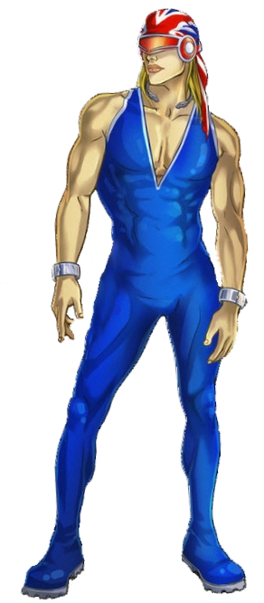 He looked a bit like a gymnast or circus acrobat in his sleeveless, one-piece blue jumpsuit with a Union flag helmet and face visor.