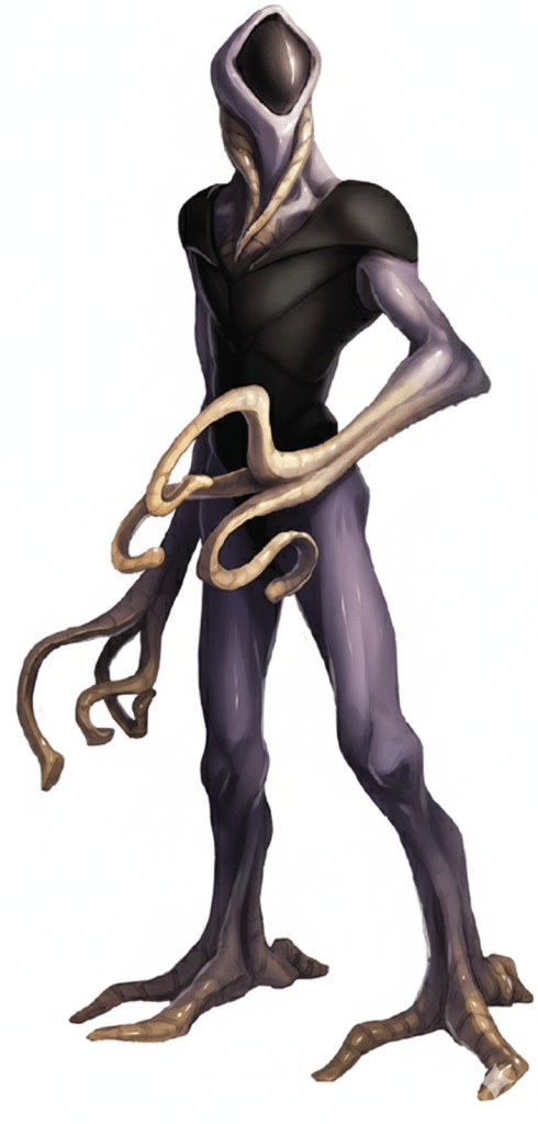 Akira had to wonder if the Vegans were actually vegan…then he noticed a tall alien biped approaching, its head seeming consisting of a single lens in an organic hoodie, its two manipulative appendages a cluster of ever flicking tentacles. It wandered around the stalls, talking with several others in the camp, especially the non-humans.