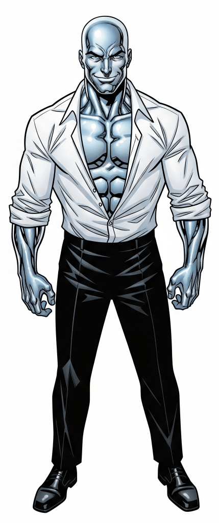 They could also see movement beyond it, up in the ‘bow’ area located above the forward ‘dome’. Several human-sized figures moving in the gloom, possibly trying to activate some sort of built-in device. Going by the reflection, one of them was covered in silver armour. It took Banshee and Akira several seconds for their eyes to adjust and realise that it wasn’t armour they were seeing, it was mutated skin; it was the terrorist known as Kaos himself.