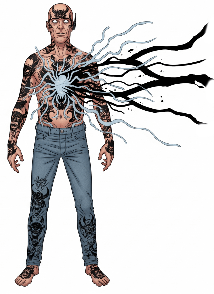 Akira unleashed multiple blasts at the Etched Man as he tried to pull a spider-like beast from his skin – the blasts knocked him unconscious as blast after blast wiped away the ink from his skin.