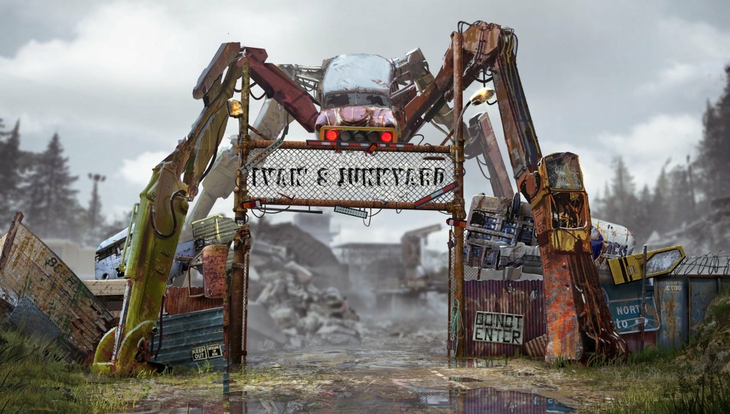 She stepped around the piles of old cars that never got any smaller and headed towards the main gate. She’d had to park her car at the far end of the street, given the traffic restrictions on the cul-de-sac, and looked up at the giant arachnid-looking sculpture that Mikey had built from the chassis of a scrapped car and some digger arms and mounted over the gate that still bore the legend ‘Ivan’s Junkyard’. She had to wonder who was Ivan?