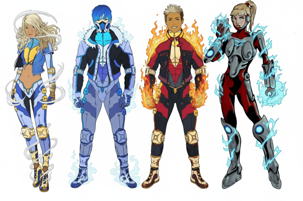 The latest team was composed of four Metas that were still in their teens, most of them had worked together before joining the DD’s but they were still young and immature. This team acted as personal bodyguards to Sir Damien. Three of its members – Aero, Hydro, and Pyro – had previously being part of a London-based HCP-certified team known as the Elementals until Sir Damien had recruited them. A newcomer named Electro rounded off the new team.