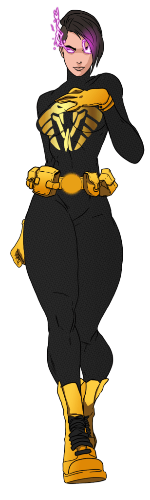 Inside, X-Ray saw the woman raising her arms towards him as she stepped past the table; he rose from his chair and unleashed a gravi-kinetic wave at her, but she managed to avoid the blast. She now ran at him, only feet away, her hands glowing noticeably in the darkness. Instinctively X-Ray twisted to the side, narrowly avoiding her hands.