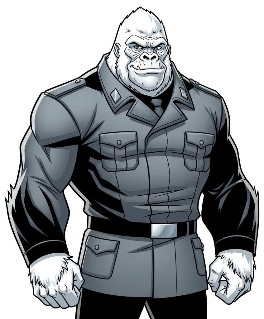 Zeitgeist is a Nazi scientist from the future currently inhabiting the body of a mutant ape. He is self-aggrandizing, self-important, and sneeringly arrogant. Although ostensibly aligned with the Third Reich, Zeitgeist is playing a larger game of influencing history to not only ensure the Axis wins the war, bringing about the future he came from, but also ensuring he can eventually rule that Thousand Year Reich. Due to his powers, his arrangement with Gaviel, and the absence of his foe from his own paratime, Doctor Tomorrow, he is utterly confident in his victory. If it doesn’t work out in this timeline, he’ll try it again, and again, until all these nuisances are overcome. His success is inevitable.