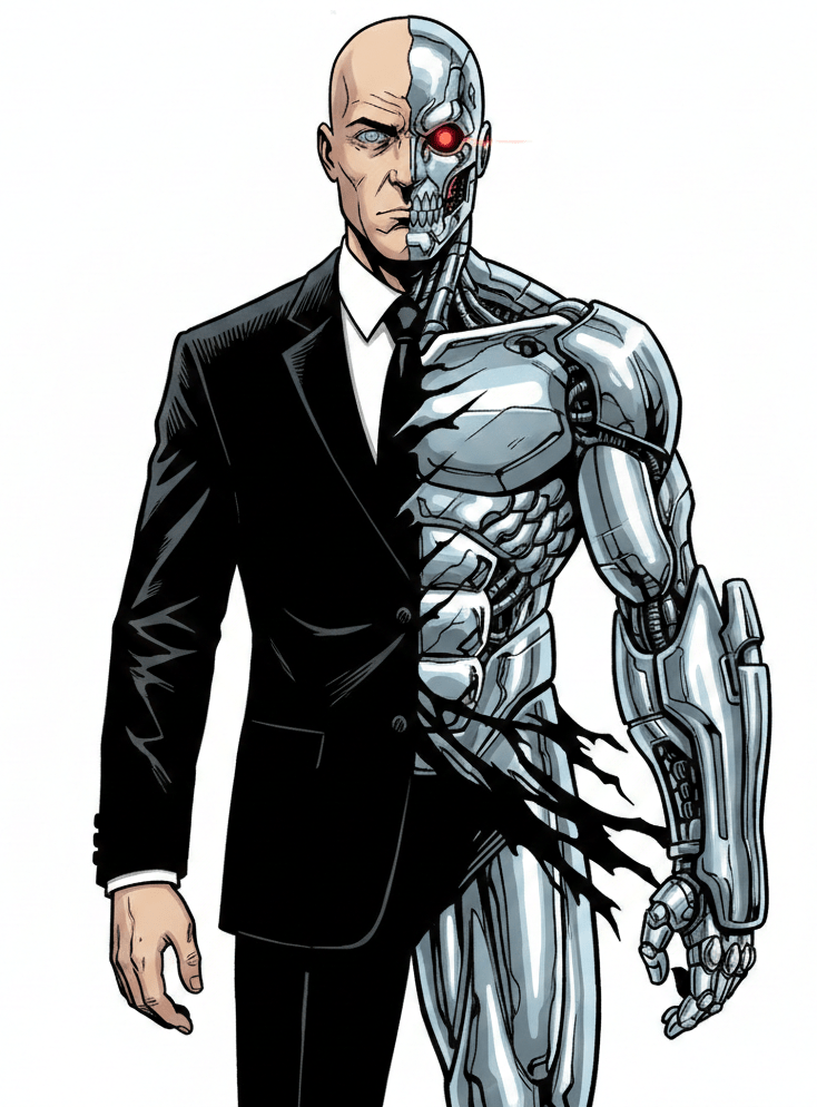 Then he felt his vision burn as a portal brightly glowed into life behind the cyborg, as Tesla manifested a teleportal and stepped through, leaving the cyborg behind. For a brief moment X-Ray considered chasing after her, but they had enough to deal with between the two lots of mechanoids and the disaster unfolding around them. As he watched two of the silver doppelgänger androids began to advance on the cyborg leaving the other two to confront Mekha Prime.