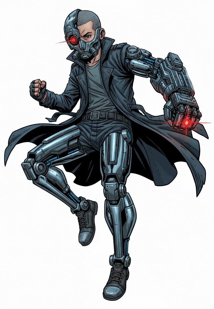 They could now get a clearer view of the cyborg as a woman stood up and approached the stage; the cyborg stepped out of the shadows and into the light. It, he was young, about 12 or 13 at most, but the majority of his body had been replaced with adult-sized cybernetics.