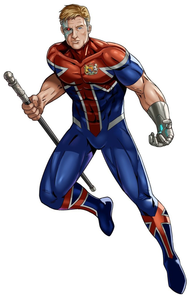 Commander was injured during the Terminus invasion of London when a new meta-human’s powers was activated and quickly got out of hand. Commander was forced to power-stunt his invulnerability force field to contain both himself and the youth with his out of control plasma powers. He stopped the youth’s powers from accidentally killing hundreds of people when their powers went nova and consumed the boy, leaving only dust. However before Commanders’ force field could shrink back around him, the blast consumed half of his body. Damaged as much by his failure to save the boy as he was by his own life-threatening injuries, Commander was immediately sent to Reading Meta-Medical Facility where he spent a year in stasis being healed and being fitted for cybernetic replacements for his lost limbs and organs. Although he tried to return a hero, he could not forgive himself his failure and subsequently retired from active service.